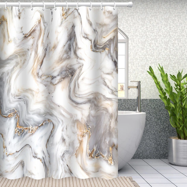 Шторка для ванної кімнати Bathlux 180 x 180 см з водовідштовхувальним покриттям з мармуровим бежевим візерунком