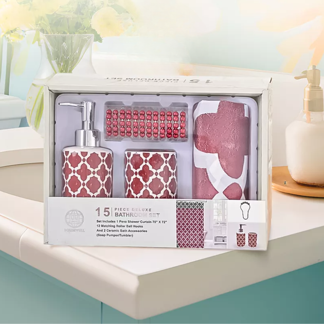 Шторка для ванної та душу набір аксесуарів, комплект приладдя у ванну кімнату: шторка, стакан для щіток, дозатор для мила SC