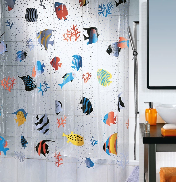 Шторка - фіранка для ванної Spirella Fish 180x200 PVC Рiзнокольорова (10.21960)
