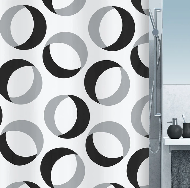 Шторка - фіранка для ванної Spirella Rings 180x200 Polyester Сіро-чорна (10.15184)