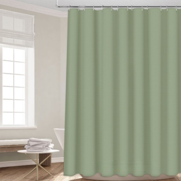 Набір шторка для ванної та душу 178x183 см з підкладкою та гачками зелена жакардовий візерунок