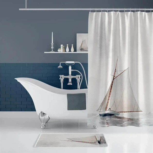 Шторка 180*200 см для ванної кімнати поліестер з декором Sailing
