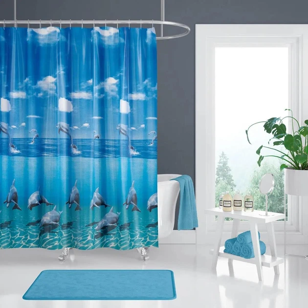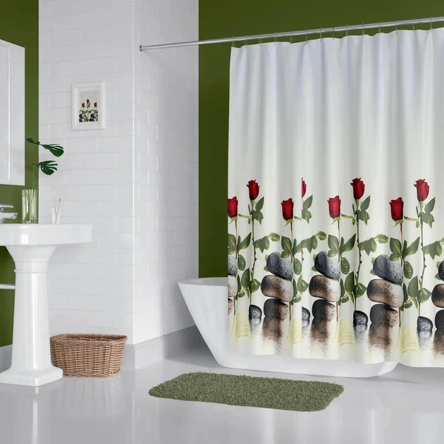 Штора для ванної та душу турецька тканинна щільна 3D Тропік 180х200см