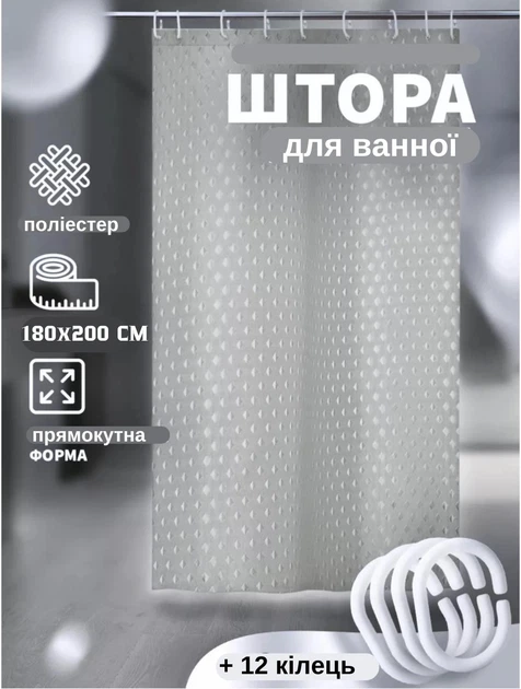 Штора для ванної кімнати силікон 3Д 180х180 см сіра від води бризок