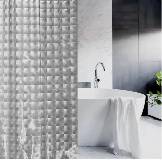 Штора для ванної кімнати силікон 3Д 180х180 см сіра від води бризок у кубик