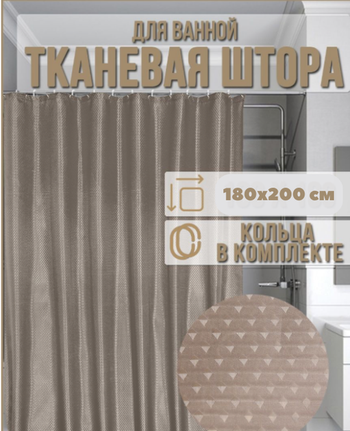 Шторка для душу тканинна з поліестеру водонепроникна 180х200 см світло-коричнева