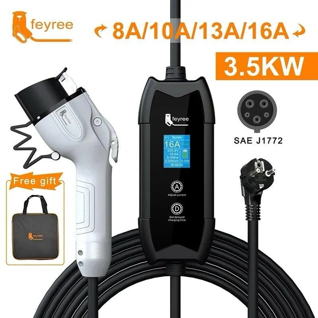 Зарядний пристрій FEYREE для електромобіля Type 1 3.5 кВт 5м 8A 10A 13A 16A +Сумка