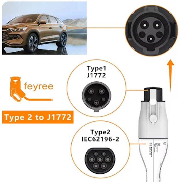 Перехідник feyree 7.4 квт 32а 1-фаза type 2 - type 1 с замком FEYREE, P-T2T1L