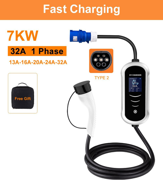 Зарядний пристрій для електромобіля IPENGEN 7kw ( кВт) 32 A 1-фаза Type 2 (ЄВРОПА) CEE Plug