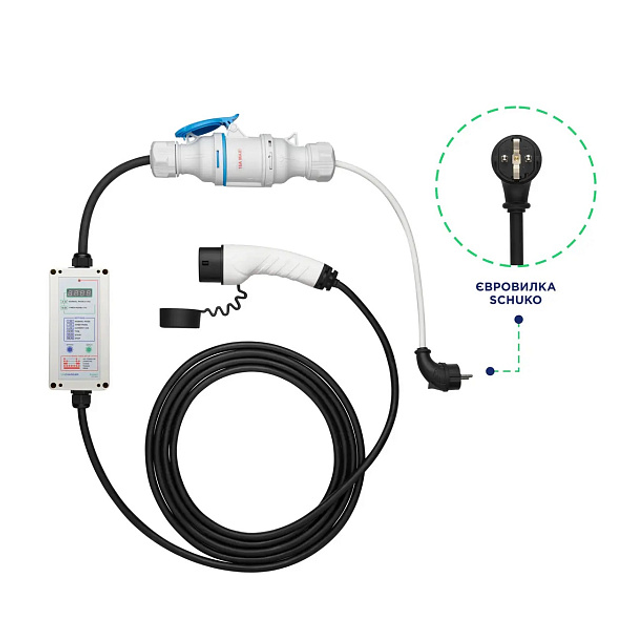 Заряджання для електромобіля 7.4 квт 32а 1-фаза type 2 (європейське авто) 9м pro UACHARGER, CHC-PR120721-21-9