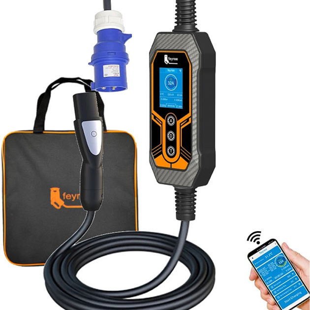 Зарядка для електромобіля 7.4 квт 32a 1-фаза type tesla (американське авто) wi-fi lion king FEYREE, FY7-32-1PH-TS-K8