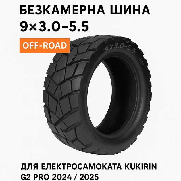 Пневматична безкамерна шина 93.0–5.5 TUBELESS Off-Road для електросамоката KuKirin G2 Pro 2024 / 2025 (10801)