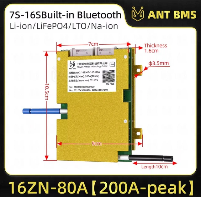 Смарт БМС Smart BMS ANT 7-16S 80A (Peak 200A) 24V 36V 48V 60V (16ZNA0-16S-80A)