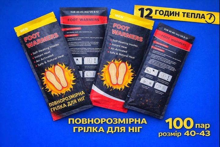 Хімічна грілка для ніг 40-43 (100 пар) — туристичні одноразові термостельки від холоду