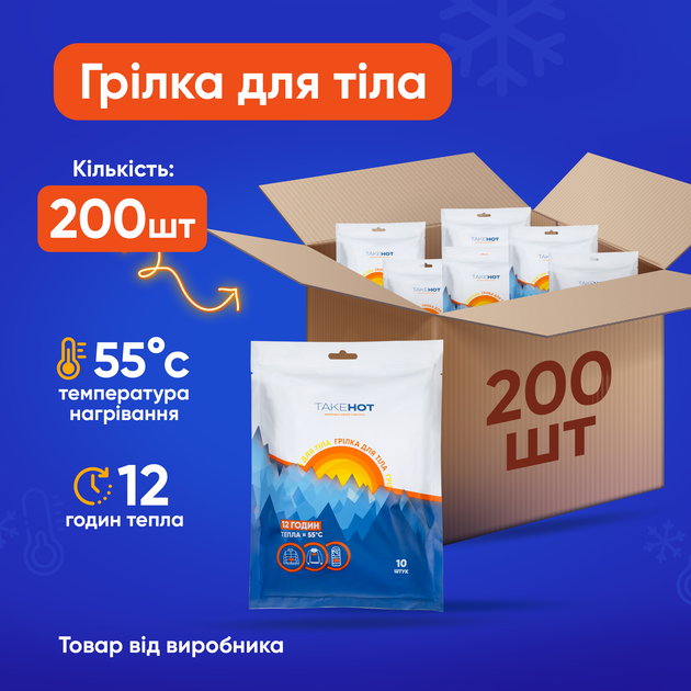 Хімічна грілка для тіла TakeHOT 200 шт одноразова термогрілка до 12 годин тепла