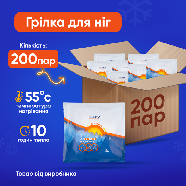 Хімічна грілка для ніг TakeHOT (200 пар) — туристичні одноразові термостельки від холоду