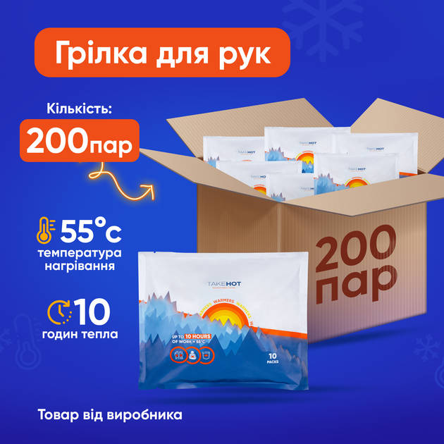 Хімічна грілка для рук TakeHOT (200 пар) — туристичні одноразові термогрілки від холоду