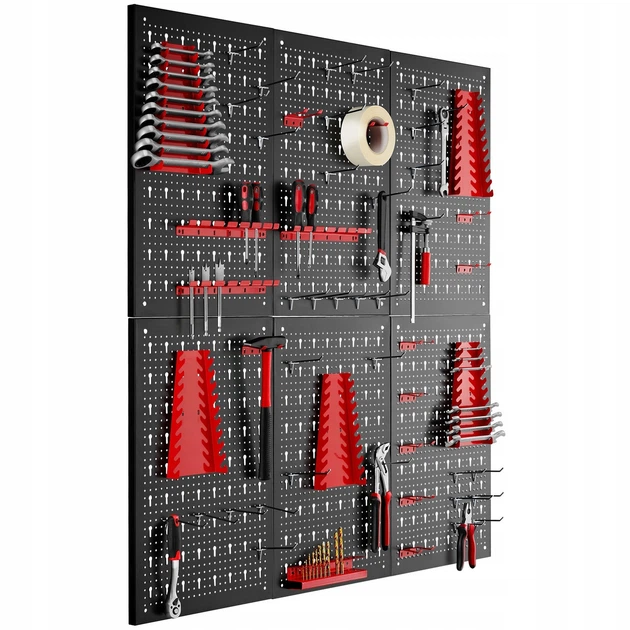 Велика металева 6секційна перфорована панель-органайзер для інструментів — 24060 см, 52 тримачі