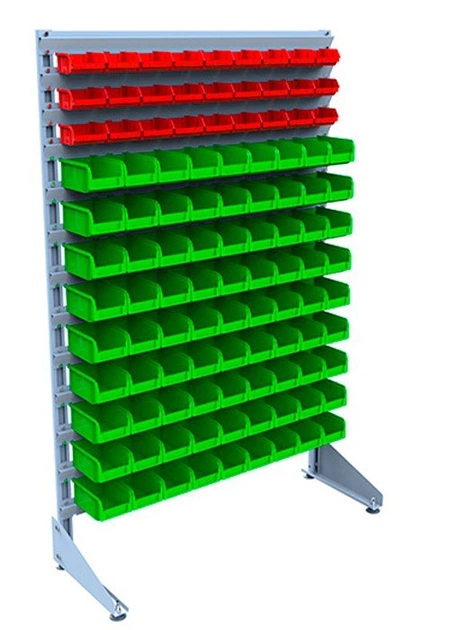 Складський металевий стелаж з пластиковими ящиками для метизів Art 700