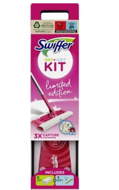 Швабра Swiffer KIT набір для легкого прибирання — універсальна швабра + серветки для сухого та вологого прибирання (8 сухих