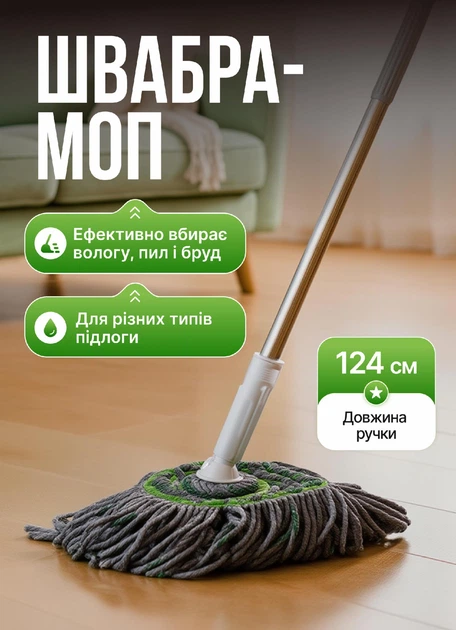 Швабра для миття підлоги із самовіджимом 360° 140 (см) Household швабра з телескопічною ручкою