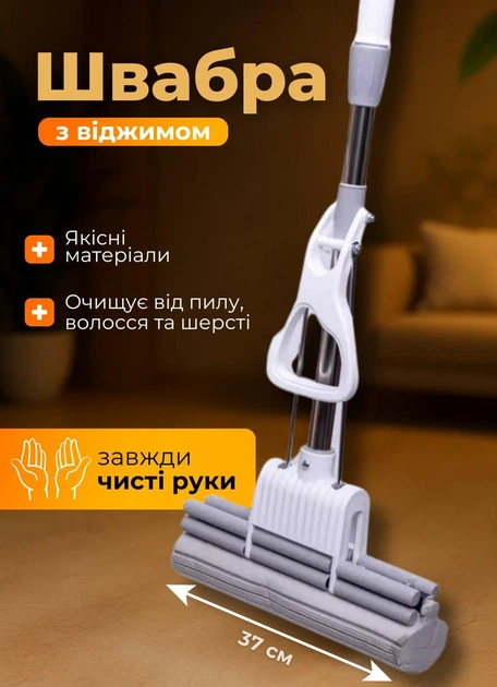 Швабра з віджимом без відра 38 см професійна швабра для миття підлоги 360° самовіджимна телескопічна
