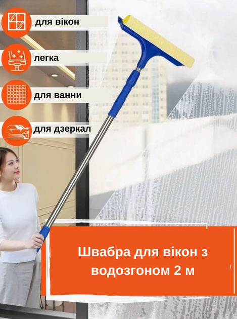 Скломийка 2 м швабра для миття вікон скла машини дзеркал розсувна довга міцна ручка