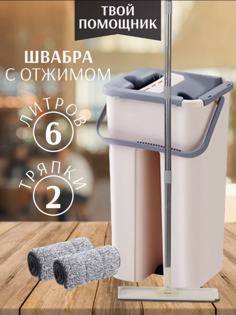 Швабра та Відро Велике Scratch Cleaning Mop зі складною ручкою та системою віджиму, дві насадки мікрофібри