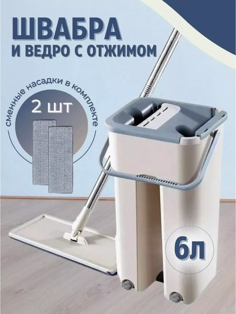 Швабра ледар з відром і віджимом для якісного прибирання Scratch Mop Сіра