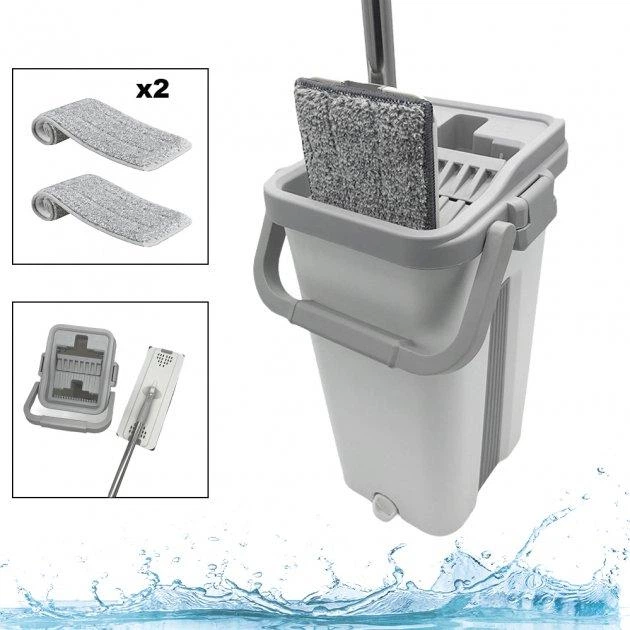Набір для прибирання Швабра ледар для підлоги з віджиманням та полосканням Cleaner 360 Відро 8л 2 насадки мікрофібра