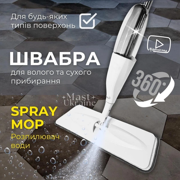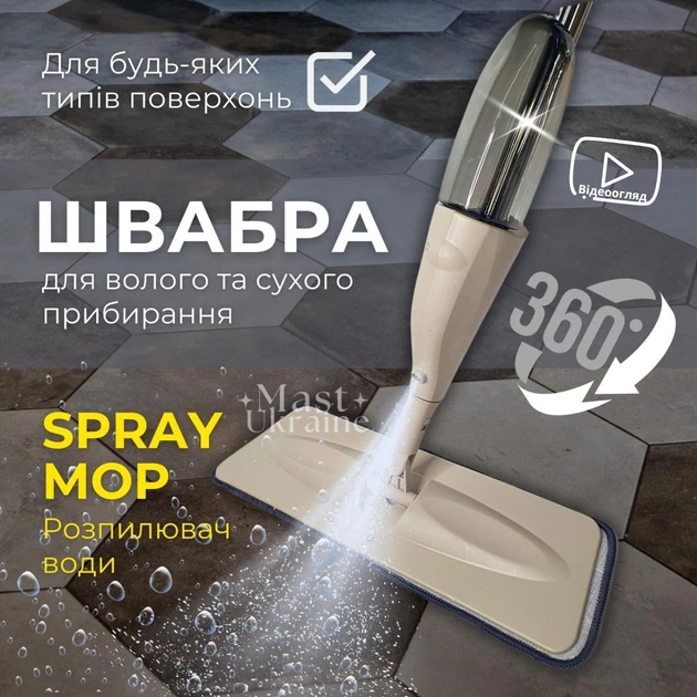 Універсальна швабра Health Spray Mob 3в1 з розпилювачем води та насадкою для миття вікон, для волого та сухого прибирання Сі