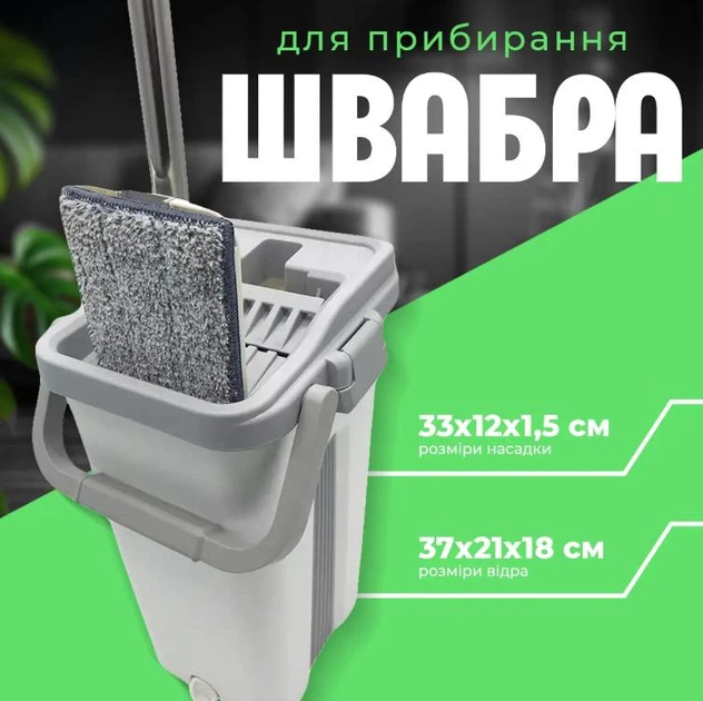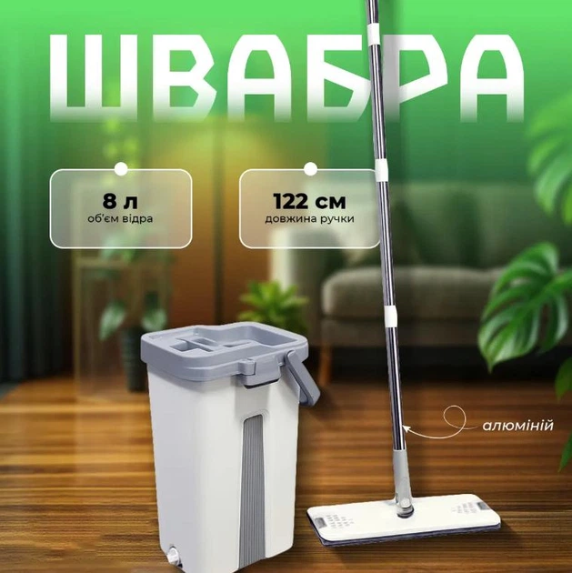 Комплект розумна швабра ледарка з відром 8л і автоматичним віджимом два відсіки, дві насадки для прибирання підлоги