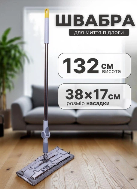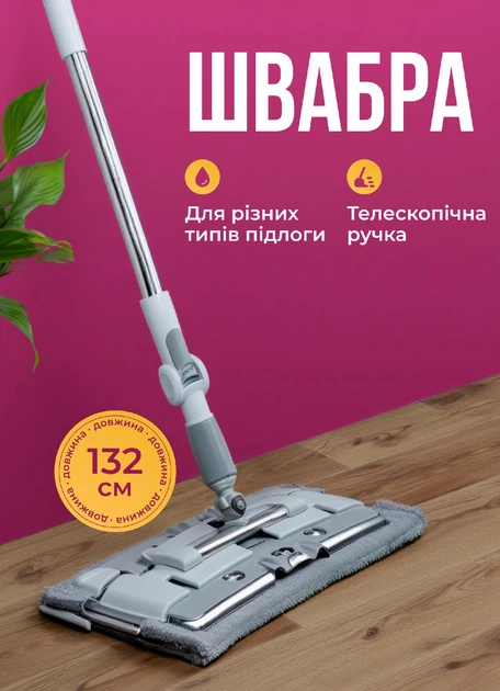Швабра для підлоги професійна з телескопічною ручкою 132 см швабра для миття підлог в комплекті запасна частина для швабри м
