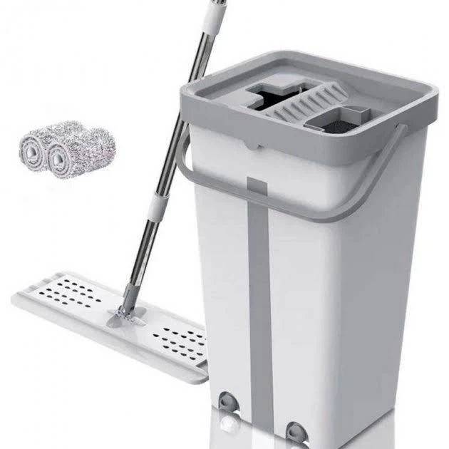 Універсальна швабра з системою віджиму, відро зі сталевою центрифугою.