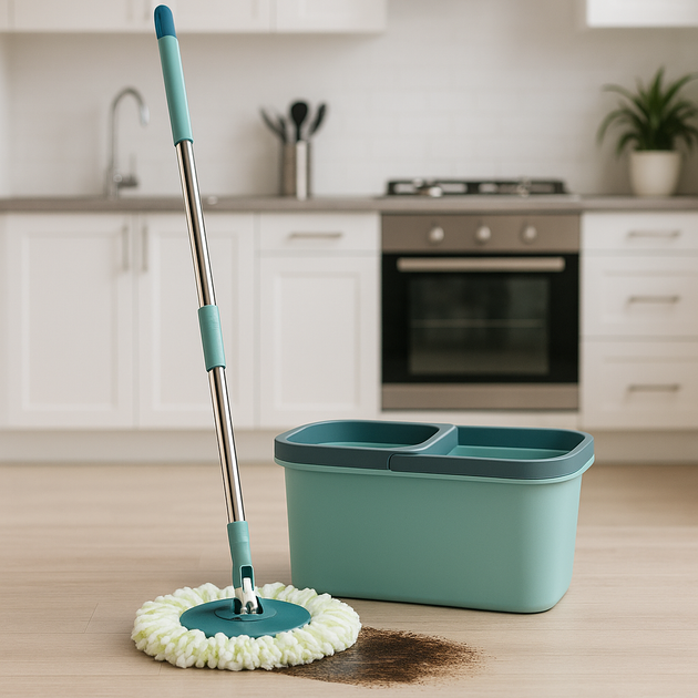 Швабра з автоматичним віджимом і відром 10л+ 2 насадки Бірюзовий