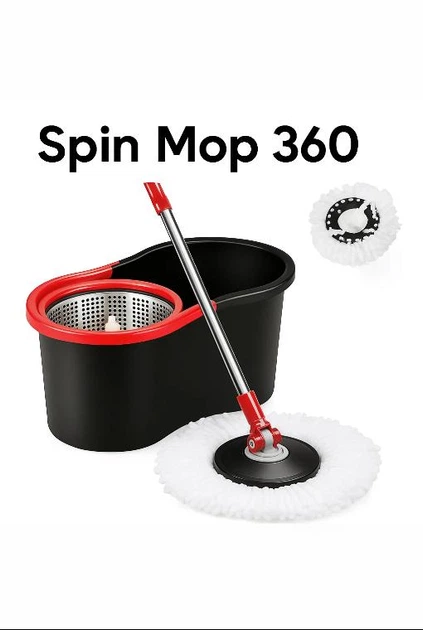 Набір для прибирання турбо швабра з турбо віджиманням подовженою ручкою на 8 л Spin Mop 360 чорне
