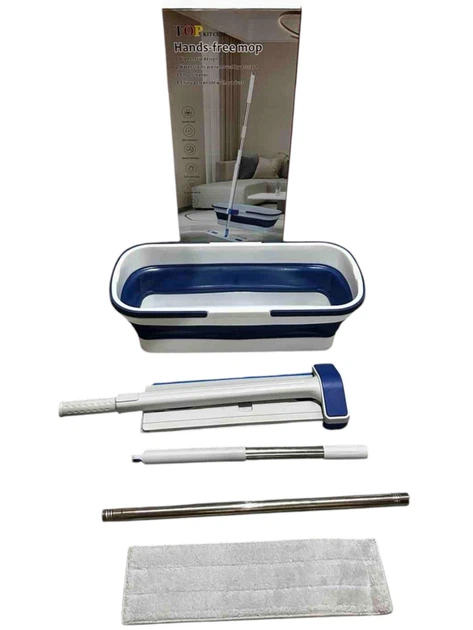 Швабра ледар з віджимом і складним відром для швидкого прибирання в будинку Top Kitchen Hands-free mop DII65 Біло-Синя