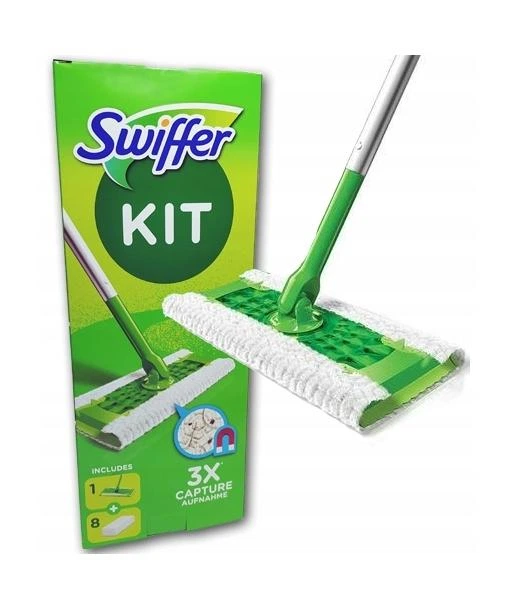 Швабра для миття підлоги Swiffer Kit 8 сухих і 3 вологі серветки для прибирання пилу з підлоги