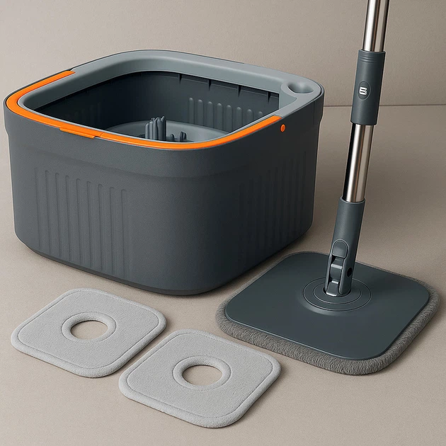 Набір швабра з віджимом та відро 5.8 л мікрофібра розбірна універсальна сірий