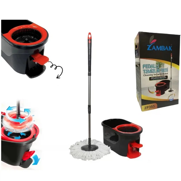 Набір для прибирання Ледащо (швабра + відро з авто-віджиманням) 360° ZP-355 Zambak