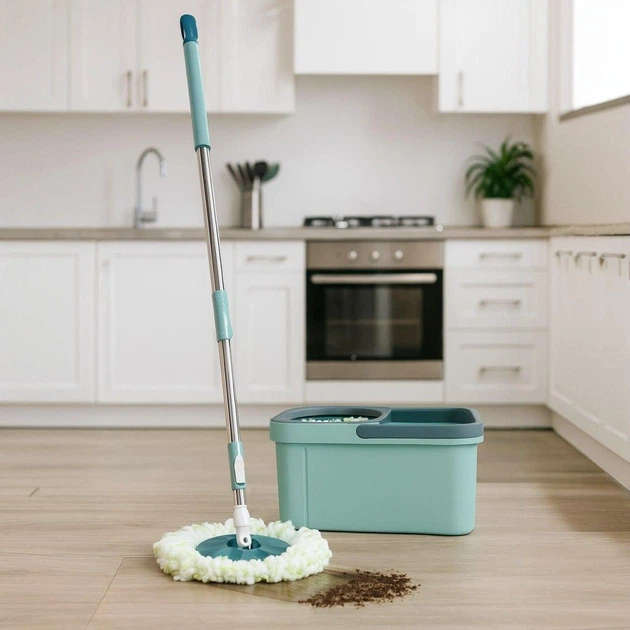Швабра з автоматичним віджимом та відром 10л+ 2 насадки бірюзовий