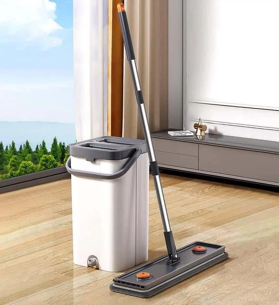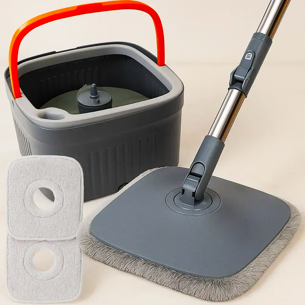 Швабра з безконтактним віджимом та відром (5,8 л) + 2 насадки (L)