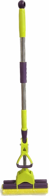 Швабра-полотер 27 см з подвійним віджиманням і пластиковою головкою, витискна з насадкою губкою