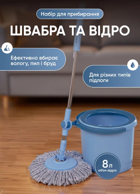 Набір для вологого прибирання 2в1 Household швабра кругла мотузкова + відро 8 (л) з самовіджимом