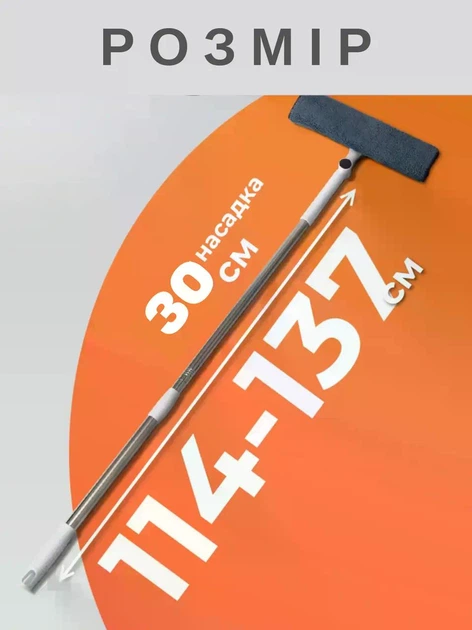 Швабра розсувна для миття вікон із мікрофіброю, скломийка + водозгін гумовий