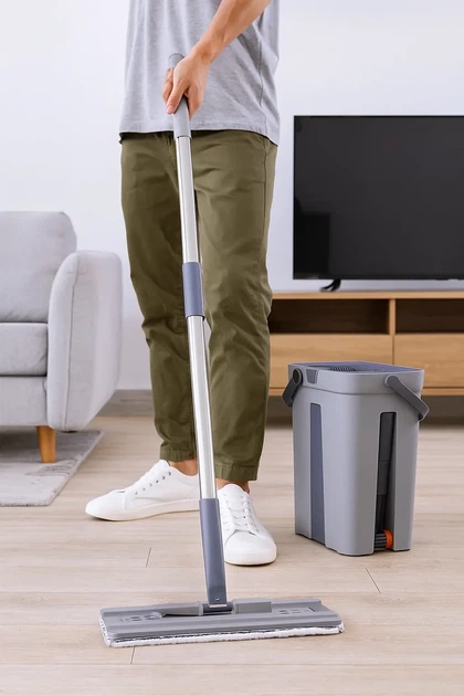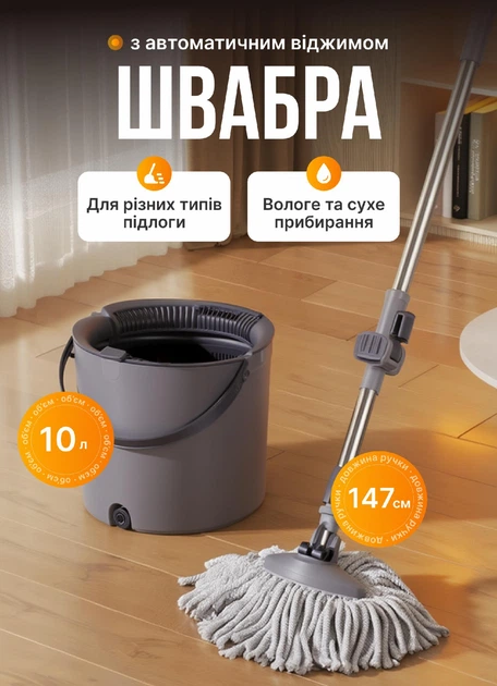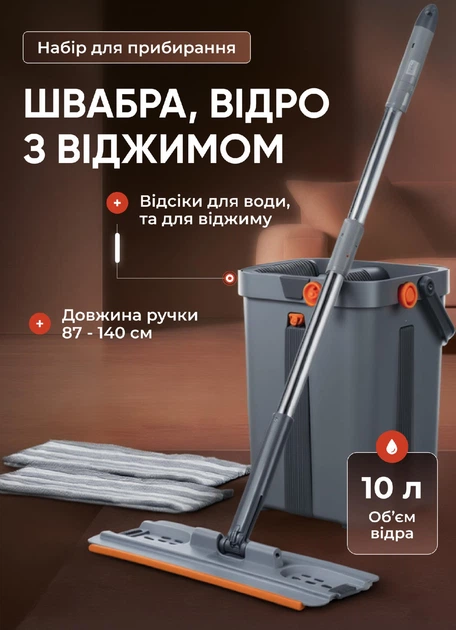 Набір для прибирання 2в1 професійна швабра з віджимом і відром Сірий