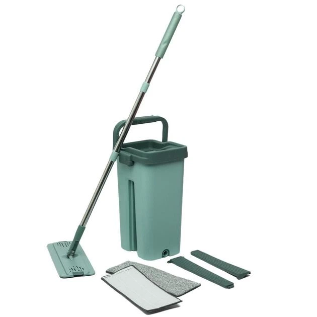 Телескопічна швабра з плоскою насадкою і відром з 2 секціями комплект для прибирання підлоги Ywiu