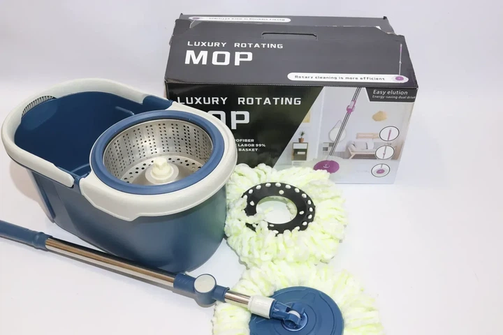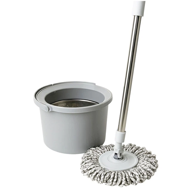 Набір для вологого прибирання з круглою телескопічною шваброю з мікрофібри та відром із віджимом для дому