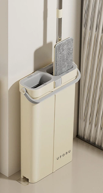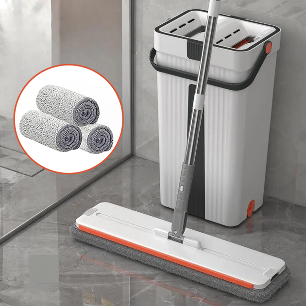 Швабра з віджимом та відром, швабра-ледарка з автоматичним віджимом, відро на колесах, 4 змінні насадки в комплекті (BD-125a
