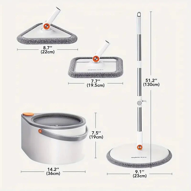 Набір швабра та відро з віджимом Joybos Spin Mop S01, 3 насадки, по 2 мопи в комплекті